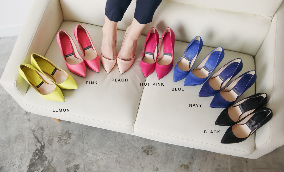 レディースファッションの婦人靴(レディースシューズ)の分野でパンプスは代表的なカテゴリー。スニーカー、ミュール、サンダルなど数かあるレディスファッションシューズの中でも最もスタンダードな種類で痛くないフラット(ぺたんこ)やピンヒール、ローヒール、オープントゥ、ストラップ、太ヒール、厚底、ポインテッドトゥ、バイカラー、リボン付きや、ひょう柄、メッシュなど種類や形状も多く存在し最も女性らしさを引き立て世界で多くの女性に愛されています。