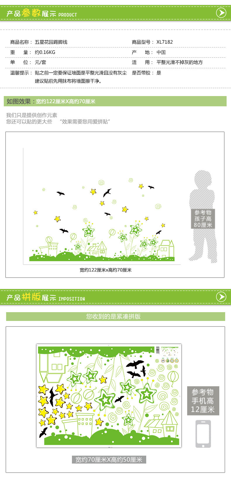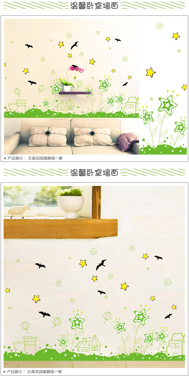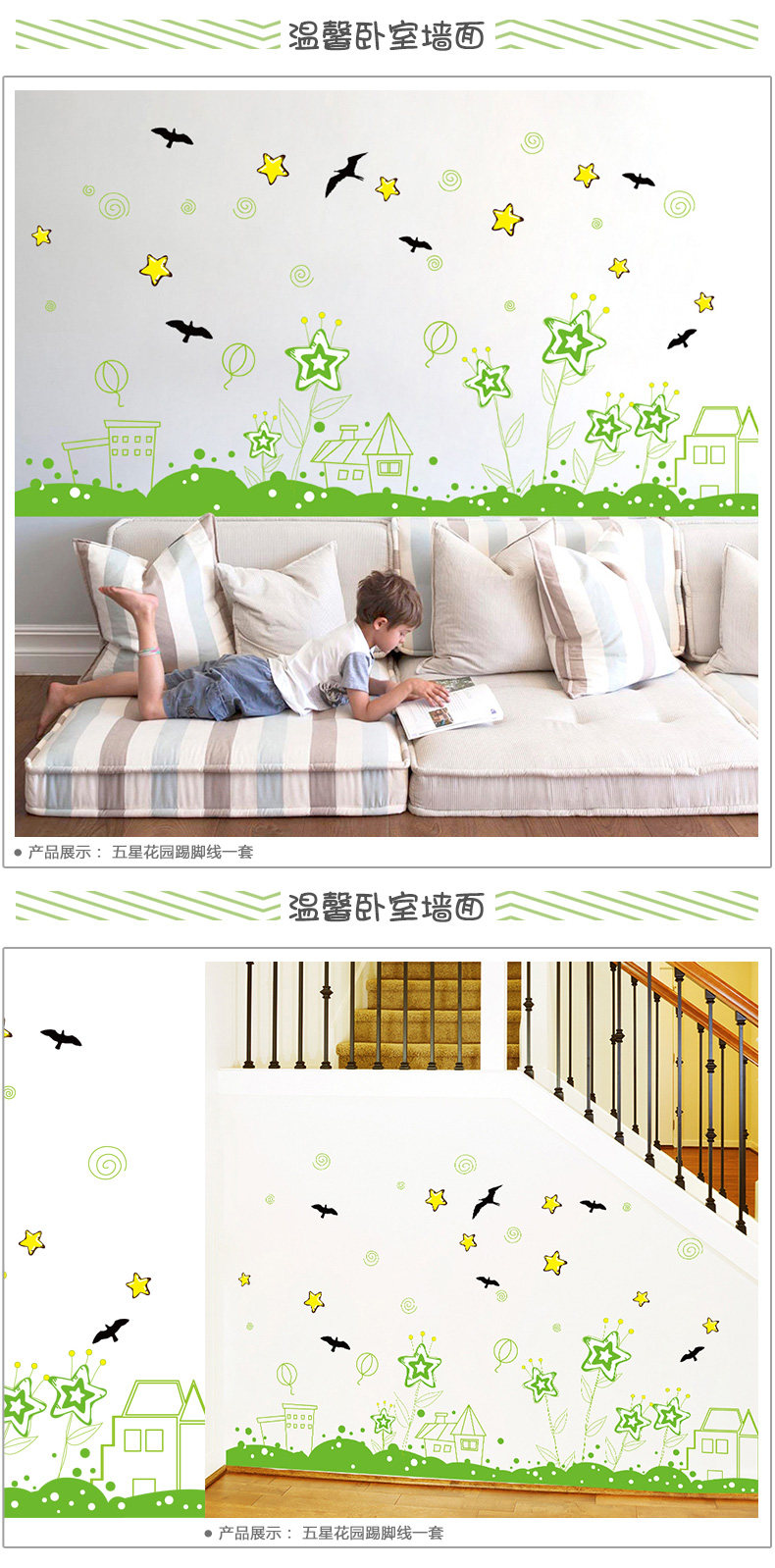 五星花园踢脚线贴纸墙脚腰线创意儿童房间墙壁走廊装饰贴画可移除