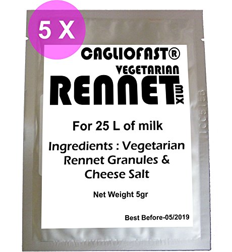5 X CAGLIO FAST Granules Mix 5g Pack Vegetarian Rennet & cheese salt mix For 25 L Milk …