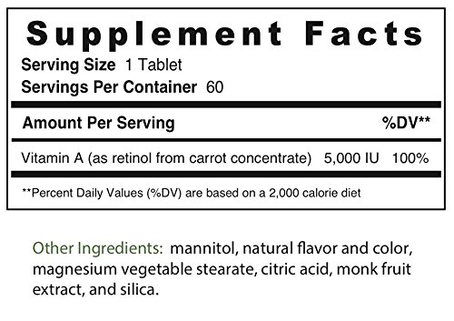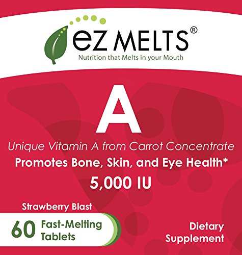 -. Feature : Unique Vitamin A sourced from carrot concentrate / Promotes overall bone, skin and eye health / Supports nervous system health, cell growth and renewal / 60 fast melting tablets with "Strawberry Blast" flavor / NEW GMO-Free, Sugar-Free, Gluten-Free, Fast Melting Vitamins!
