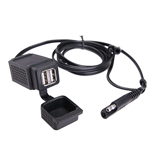 -. Feature : All-round USB Charger- 2.1A SAE to 2 USB adapter, perfectly suitable for charging 2 devices simultaneously (smartphone/iPhone/iPad/MP3/MP4/GPS/Camera/Bluetooth device, etc) / Safety First- 8-28V input voltage, 5V/2.1A output with quick disconnect and over-current protection, CE & ROHS certified, ensuring the charging safety / Super Durable- 18AWGx2C round cable, ABS and high-grade injection molding material, high temperature resistant and corrosion resistant, super durable and not easily deformed / Flexible and Steady Mount- well fitted mounting bracket with 4 install ties and 3M glue, can be 360 degree rotated, allows freely installation of the adapter / Reliable Weatherproof Cover- there's a rubber USB cover for water resistance and dust resistance, effectively enhance its lifespan