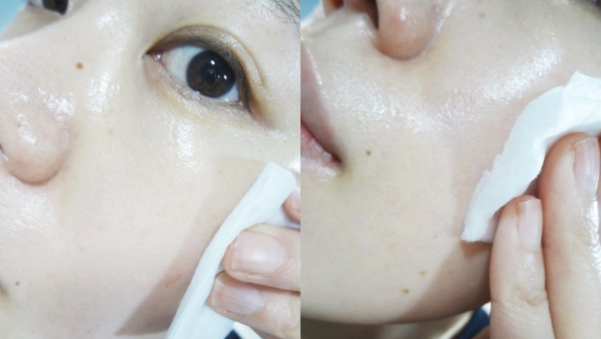 コットンに浸した布を油分と皮脂が多い部分を