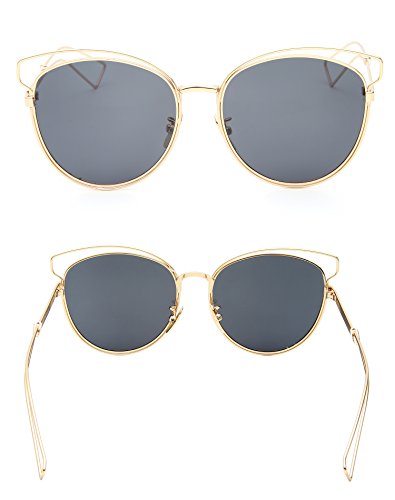 Joopin Brand Designer Cat Eye Sunglasses Women UV400 Fashion Vintage Sunglasses (Gold Frame Black Lens)