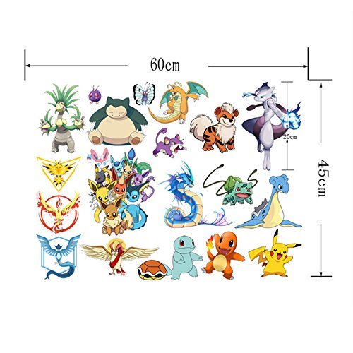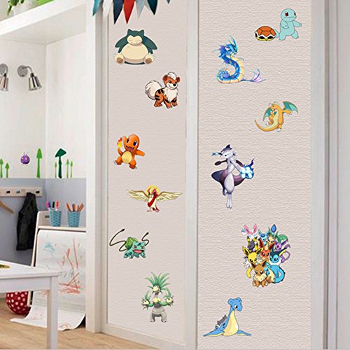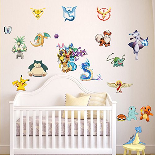 -. Binding : Kitchen -. Brand : JiaHui -. Color : Black -. EAN : 0713145869509 -. Feature : Pokemon Go is here! A must-have for pokemon fans / Comes with 19 lovely Pokemon Go wall decals / Decals range in size 17"wide x 9.5"high / Removable with no sticky residue and repositionable / NOTES: Make it flat before putting it up. -. IsAutographed : 0 -. Label : ZJH -. Manufacturer : ZJH -. PackageQuantity : 1 -. ProductGroup : Toy -. ProductTypeName : TOYS_AND_GAMES -. Publisher : ZJH -. Studio : ZJH -. Title : JIAHUI Nursery Decor Popular Characters Pokemon Xy Peel and Stick Wall Decal For Children Room Decal 17x9.5 inch -. UPC : 713145869509