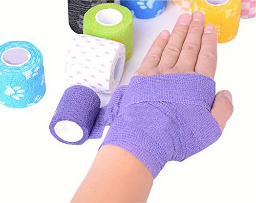 -. Feature : A set of 2 rolls. Size: 450(L)*5(W)CM, 177*2''. / A must have item in your firsr aid kid. / Perfect for home,office,shool,or outdoors. / Cohesive bandage self-adheres and allows for a controlled compression on wounds. / Porous material composition, allowing skin to breath and providing more comfort to users.