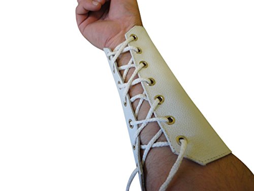White Double Leather Laces Wristband Arm Band Hand Gauntlet Cuff New Pair