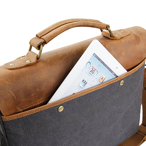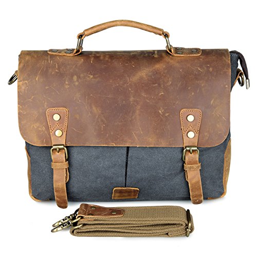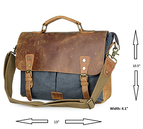 -. Feature : WELL CONSTRUCTED BAG OF HIGHEST QUALITY - A masterfully crafted bag with superior cowhide leather and red wash canvas fabric. Long-lasting and durable. The genuine leather will have naturally occurring markings - this makes it unique and allows it to exude a sense of natural beauty and redness. / BEST LAPTOP BAG - Inner paddings and bottom foam paddings protect notebook / computers from impacts and the usual knocks of daily life. The same highest quality cowhide and high quality hardware is used to make the carrying handle. Comfort of use and durability is assured! / WELL-FITTING - This bag has padded main compartment that is designed to safely carry 14-inch laptop computers of most brand, as well as fit the more common 13-inch laptops like a glove. / USEFUL FRONT POCKETS - A highly versatile bag that features 2 larger Front pockets for easy access of frequently handled items, 1 zipper pocket for significant articles such as wallets and identification documents, and 2 Inner wall pockets to store smaller items including mobile-phones, chargers, earbuds, and glasses. / EASE OF CARRY - This bag also features a wide shoulder strap that reduces shoulder fatigue. This shoulder strap can be effortlessly adjusted to preferred length and removed when not required. The bag can be carried by the handle, worn on shoulders, and positioned across body. WHAT ARE YOU WAITING FOR? Click the "Add to Cart" button now and take ownership of this fabulous messenger bag!!!