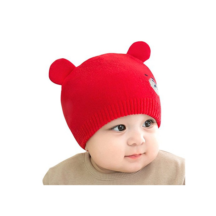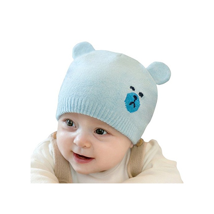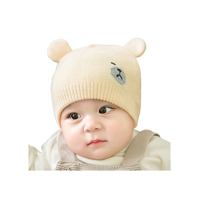 YAHUIPEIJP 귀엽 베이비 니트모 아카창 곰 씨 웅이귀가 달림 모자 후와(불화) 후와(불화) 키즈 모사 스트라이프 신생아 모자 부드러움등인지(든가) 따스한 방한 대책 추동 사