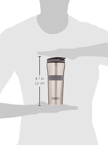 ExcelSteel Double Wall Stainless Steel Coffee Tumbler with Silicone Grip, Grey