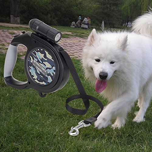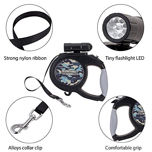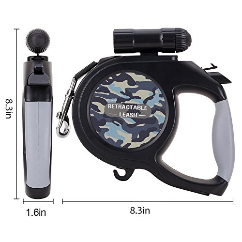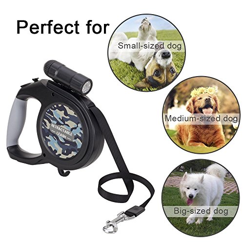 Retractable Leash --- 26ft retractable cord leash provides more extensive freedom for dogs to wander, sniff, and poke around. Dogs could be full controlled and guided when be trained, walked and jogged. Auto-stretch tracking tape could prevent to be tangled, which is convenient to storage.