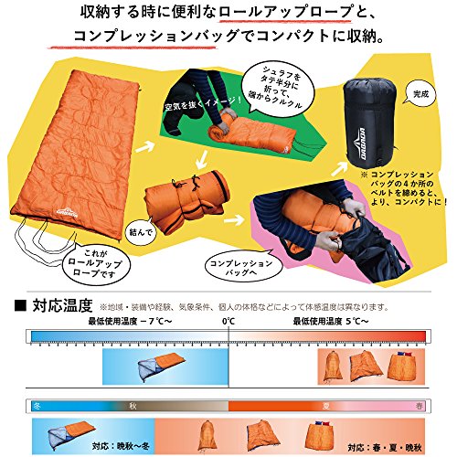 DABADA(다《바다》) DABADA(다바다) 침낭 통째로 세탁 침낭 봉투형 4WAY 슈라후 슬리핑 백 [최저 사용 온도5도]