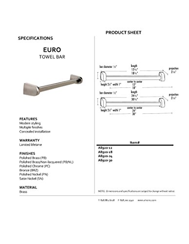 Alno A8920-12-PN Euro Modern Towel Bars, Polished Nickel