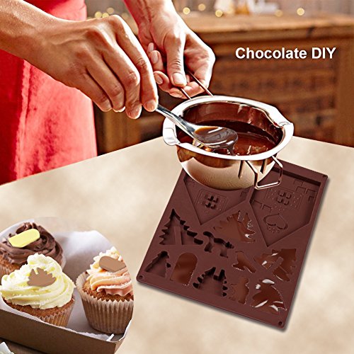 Christmas Gingerbread House Chocolate Molds Silicone,Candy Baking Mold,Kids DIY Snowman,Pigeon,Tree,Figure Model ,2Pack