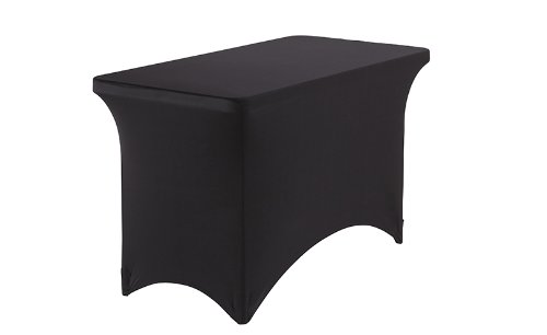 - Feature : Fitted stretch table cover / Creates instant elegance and professional look / 90 percent polyester and 10 percent spandex / Machine washable and iron safe / 4-feet length