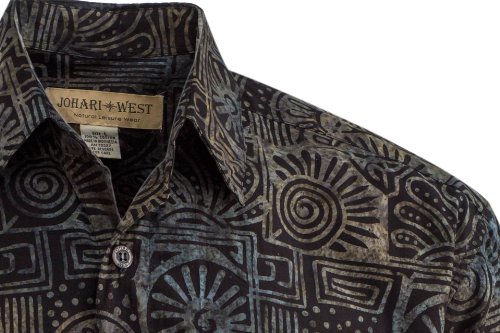 -. Binding : Apparel -. Brand : Johari West -. Color : Blue -. Department : mens -. Feature : Short Sleeve With Single Breast Pocket / Straight Bottom Hem with Side Splits / Handcrafted Batik - Each Shirt Is Individually Printed By Hand with Batik Stamps -. PackageQuantity : 1 -. ProductGroup : Apparel -. ProductTypeName : SHIRT -. Title : Indo Bay Tropical Hawaiian Cotton Batik Shirt