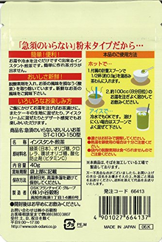 原材料:緑茶(日本)、オリゴ糖、クロレラ、環状オリゴ糖、酸化防止剤(ビタミンC)