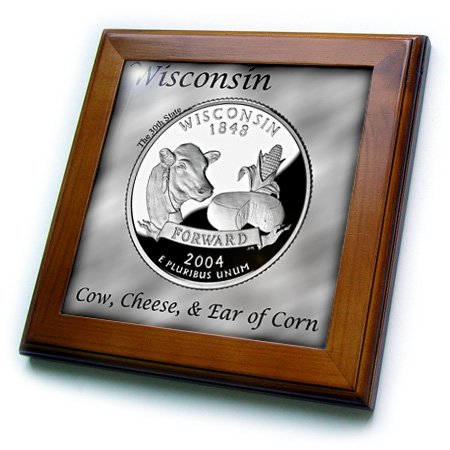 3dRose ft_120144_1 State Quarter Wisconsin Framed Tile, 8 by 8-Inch