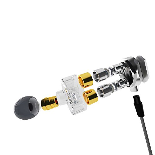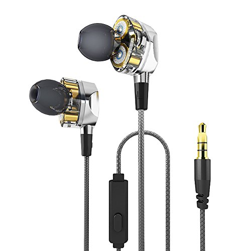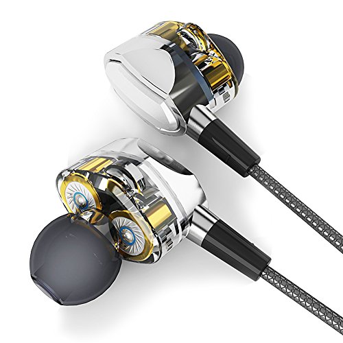collee In-ear Headphones Super Bass Noise Isolation Danamic Dual Driver HIFI 3.5mm Sport Earbuds|Earphones with Microphone Volume Controls (Silver)