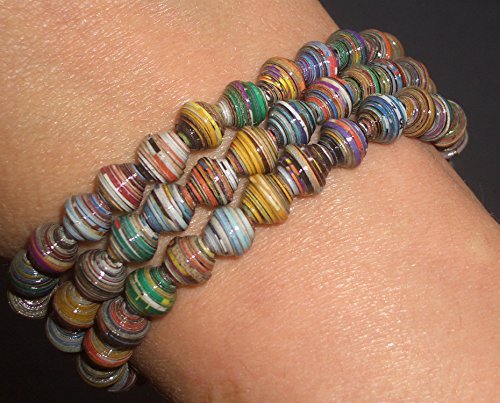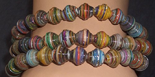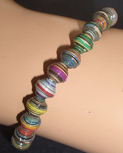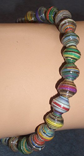 -. Title : Multicolored Round Upcycled Paper Bead Stretch Bracelets in 1 to 24 Wholesale Lots