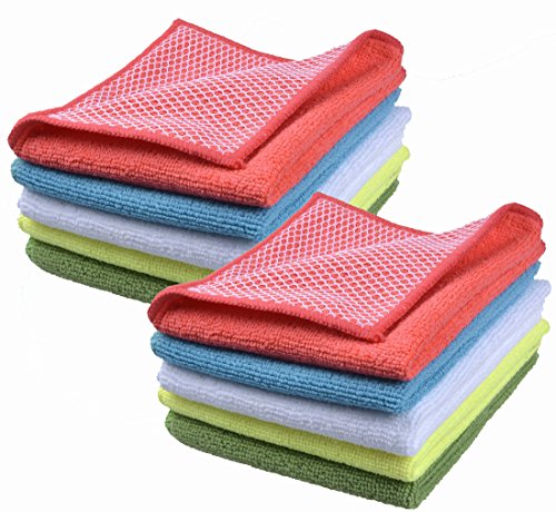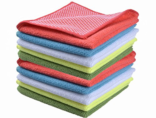 Wefive Microfiber Dish Cloths Kitchen Cloths Cleaning Dust Cloths With Poly Scour Side 12"x12" (10 Pack)