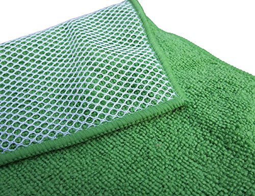 - Microfiber is highly absorbent, streak-free and lint-free; multi purpose use. with one scour side aids Thorough cleaning surface and depths