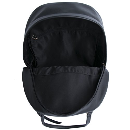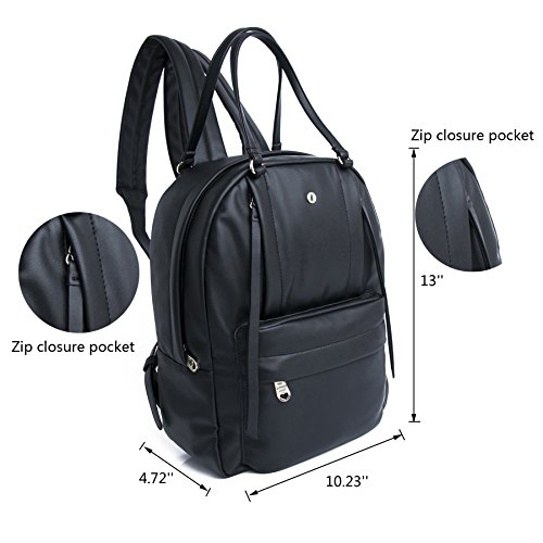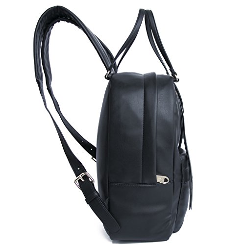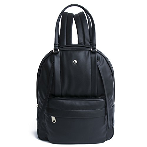 Soft vegan leather backpack featuring silver-toned cutout zipper pulls, top handle, and vertical and front zippered pockets