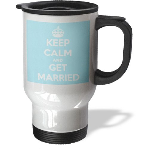 3dRose Keep Calm and Get Married, Light Blue - Travel Mug, 14oz., Stainless Steel (tm_161158_1)