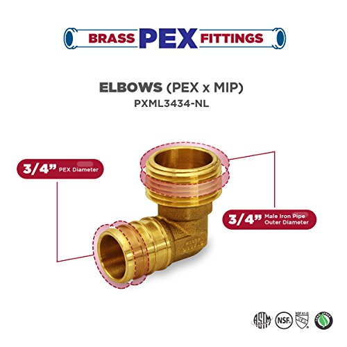 Everflow PXML3434-NL 3/4 Inch X 3/4 Inch Pex Elbows PEX X MIP, Lead Free DZR Brass Construction, Barb Connection, Compatible w/ PEX Pipe, Low-Cost Plumbing Connection, Durability, Easy to Install