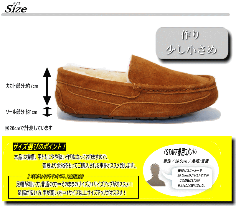 | 商品説明 | <ITEM INFO> ・天然皮革(本革スウェード)仕様のムートン(シープスキン)モカシンシューズ。 ・アッパーには撥水加工を施した表裏一枚物の羊皮を使用。 ・内側の上質なボアで、防寒対策もOK! ・ヒール部分はしっかりした設計で型崩れ防止。 ・凹凸のあるラバーのアウトソールで滑りにくい作り。 ・某人気ブランドにもひけをとらないハイクオリティーな作りで、冬のカジュアルシーンのマストな1足となっています! ▼GOLDEN RETRIEVER製品について ▼- 必ずお読み下さい - こちらの製品は、いわゆるブランド品や、アメリカ製などの高単価のレザーシューズでは御座いません。ブランド志向が強く、細部のクオリティーまでこだわる方には、あまりオススメ致しません。当店と致しましては、天然皮革(本革)を使用し、大変リーズナブルな商品と位置付けおりますが、以上の点をご理解、ご了承の上、お買い求め下さいませ。 |