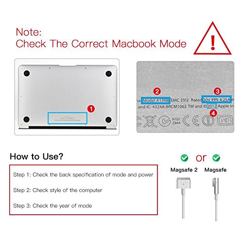 39 Inch Magsafe 2 Charging Cable- The enough long cable allows your macbook air to move freely while charging; Compatible with A1436 A1465 A1466. Pls check the correct compatible models to avoid the mistake.
