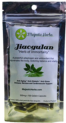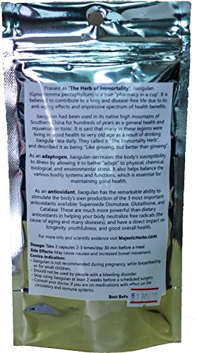 Jiaogulan Capsules (Gynostemma Pentaphyllum) by Majestic Herbs | Organic Best Quality “Southern Ginseng" "Herb of Immortality" Longevity Antiaging...