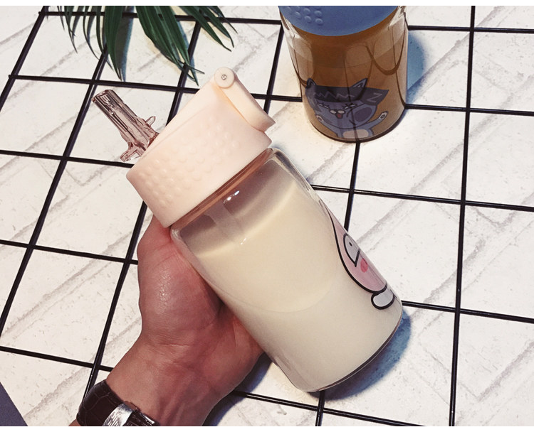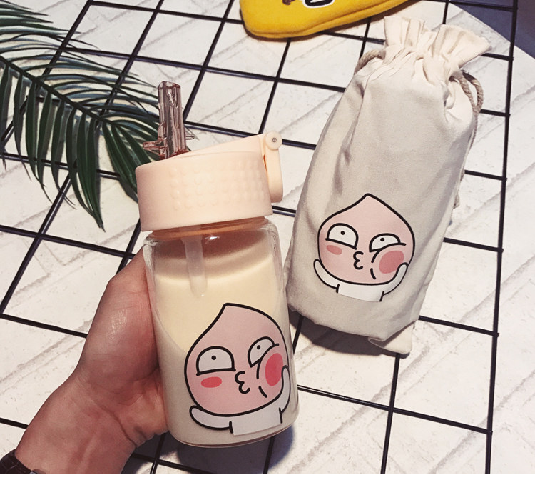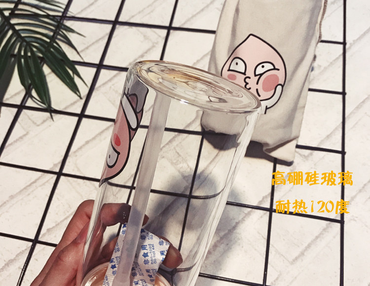 陈伟霆同款韩国可爱玻璃杯创意吸管杯成人水杯韩版女学生随手杯子
