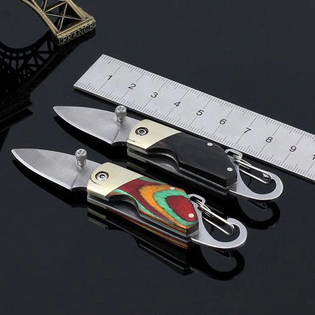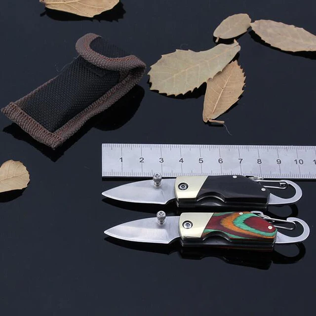 [해외] 작은 버클 포켓 전술 나이프 나무 핸들 생존 접는 나이프 EDC 사냥 칼 Navajas Canivetes