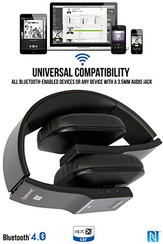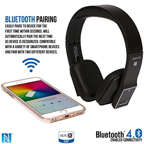 Bluetooth Headphones, Alpatronix HX110 Universal HD Noise Reduction Wireless Stereo Headset w/ Built-in Mic, NFC, aptX, Bluetooth 4.0 for Smartphones & Computers [20+ Hrs. Playback Time] - (Black)