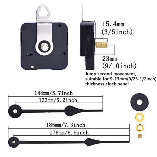 Mudder Long Spindle Quartz Clock movement, 1/ 2 Inch Maximum Dial Thickness, 9/ 10 Inch Total Shaft Length (Black)