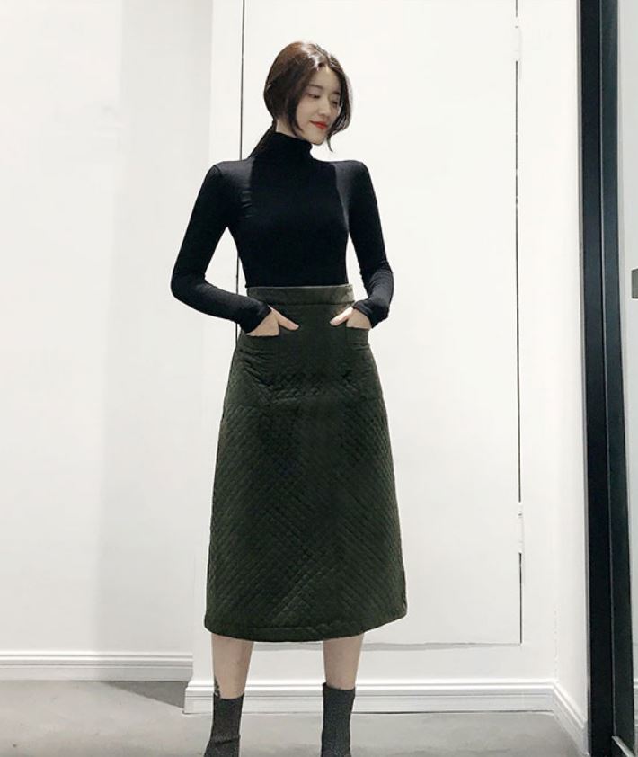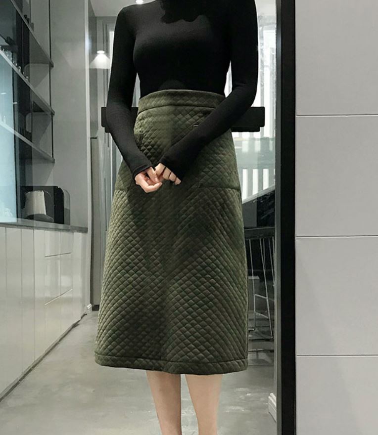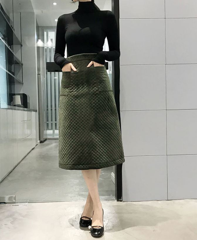 落ち着いた色味とキルティング生地が季節を感じさせる、とってもオシャレなAラインスカート♪
