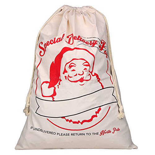 100% COTTON SANTA BAG: Our XL Santa bags are made out of an ultra durable burlap that has been woven out of high quality cotton canvas. They're sturdy, strong and just what you need to put that special touch on your family's next Christmas morning.