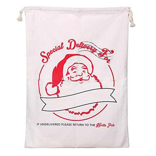 Extra Large Cotton Santa Bag with Drawstring Tie Closure 39 x 27 Santa Sack for Christmas Presents, Stocking Stuffers & Holiday Gifts (1 PC)