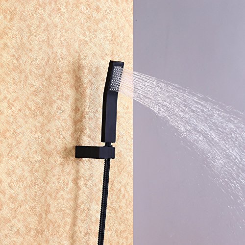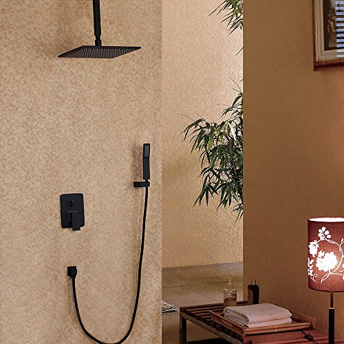 KunMai Bathroom Luxury Black Ceiling Rain Shower & Hand Shower Set Single Handle,Shower Head Size 12 Inches (300mm)