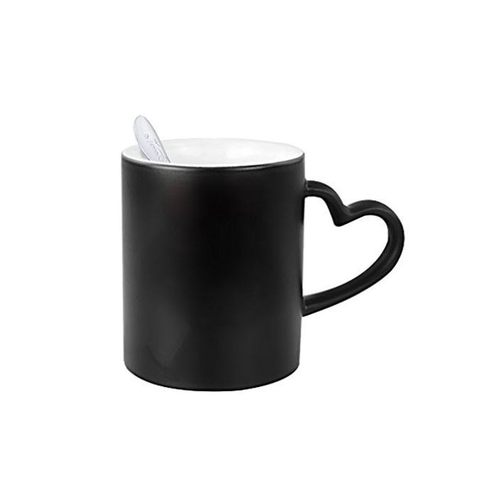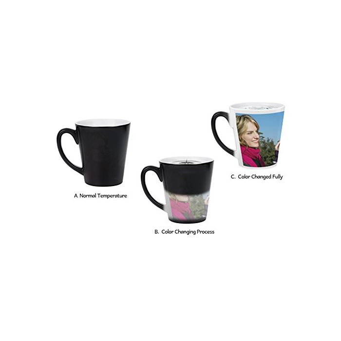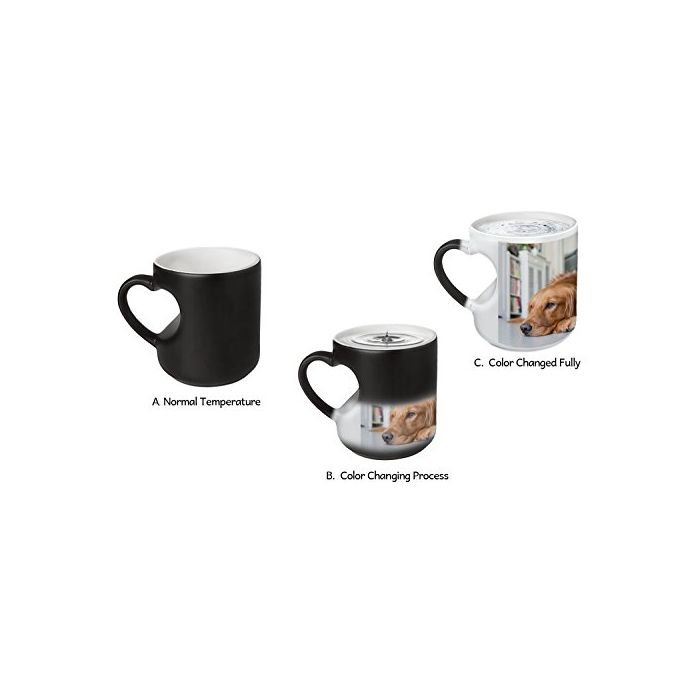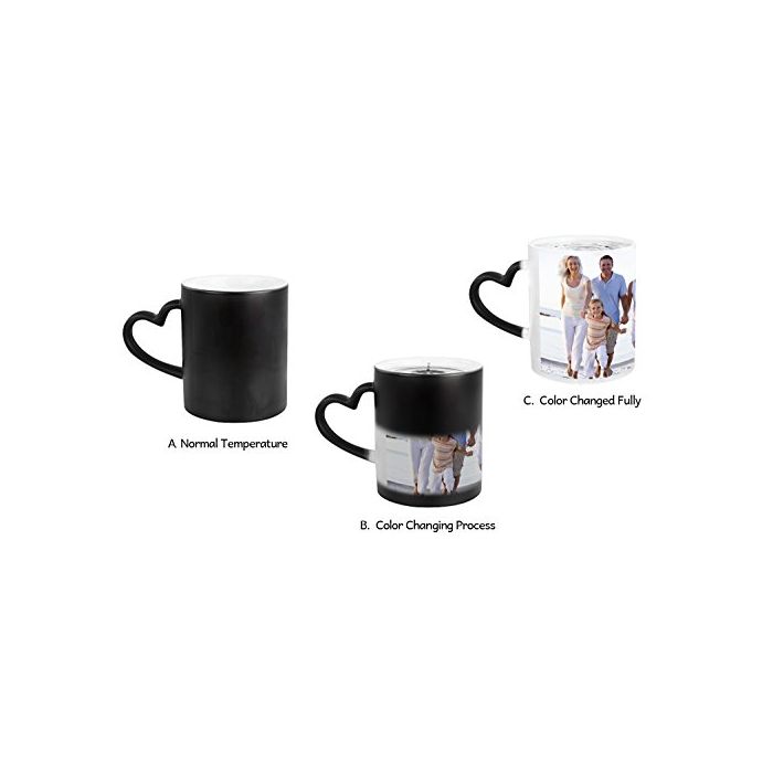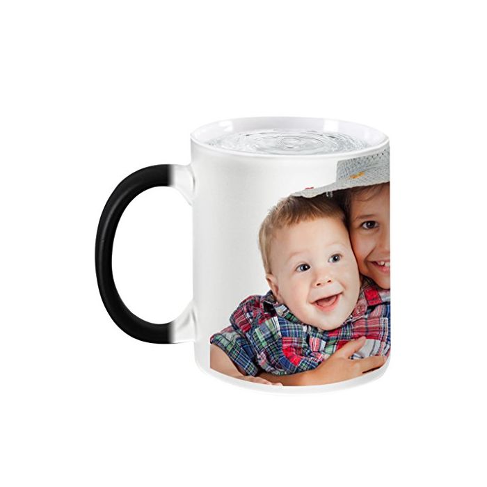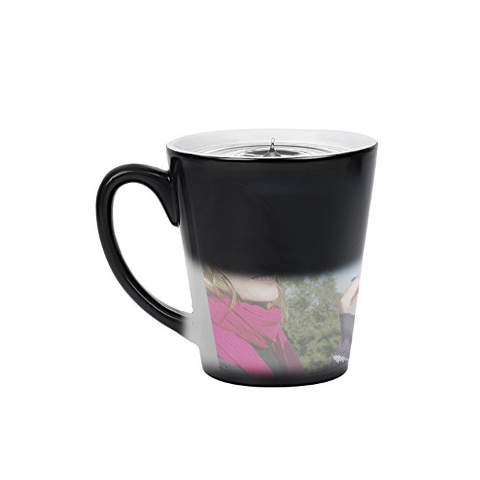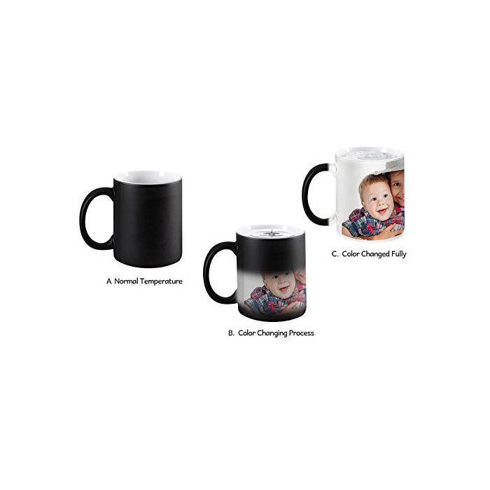 컵은 차가운 상태,본래의 색의 검정 입니다.뜨거운 액체를 쏟아지고, 인쇄 된 사진이 명백하게 되어 놀랄 만한 마법인 컵입니다.