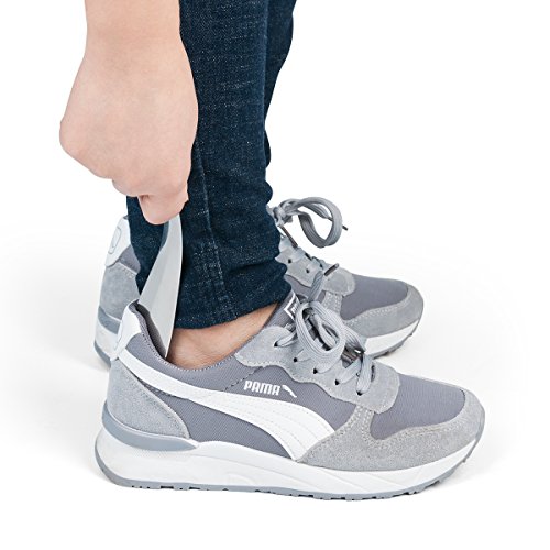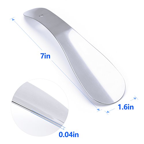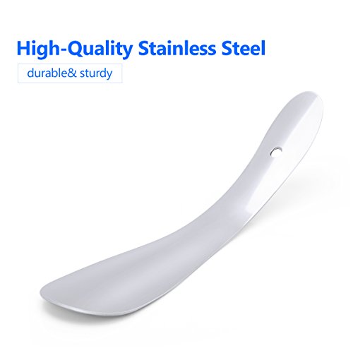 Product Description Set of 4 Metal Shoe Horns The Perfect Reversible Shoehorn That Fits All Feet Size. The Stainless Steel Shoehorn makes your morning routine simpler. The durable stainless steel body resists damage, scratching, odors, and bacteria. Simply wash with soap and water to disinfect. Ideal tool for men, women, children, seniors, and the elderly.