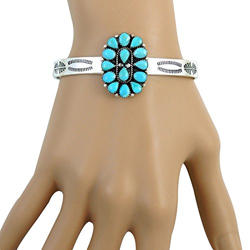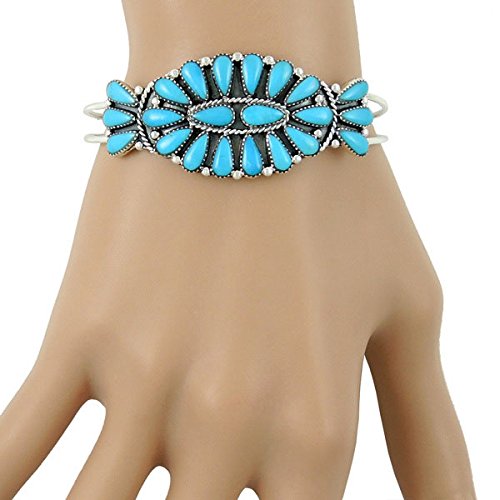 -. Feature : 925 Sterling Silver (Solid) / Genuine Turquoise (natural turquoise that has been treated & color-enhanced) / Soft & Flexible - Handmade, lightweight, and comfortably fits wrists 6" to 7.5". / Turquoise Network: Fine jewelry at UNBELIEVABLE low P.R.Ices! Accredited member of the Better Business Bureau (A+ Rated)
