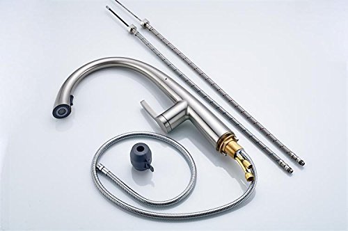 - BUILT TO LAST: Terra’s pull out kitchen faucets are designed to last a lifetime. One thing you will notice immediately when you receive your Terra Faucet is how heavy it is. This equals quality. This kitchen sink faucet with sprayer features a lead-free brass body, rust-resistant finish, leak-free joints, and a heavy duty ceramic valve that can withstand a 500,000+ close and open test.
