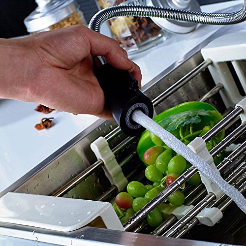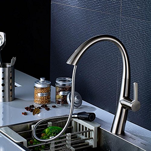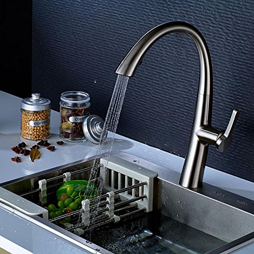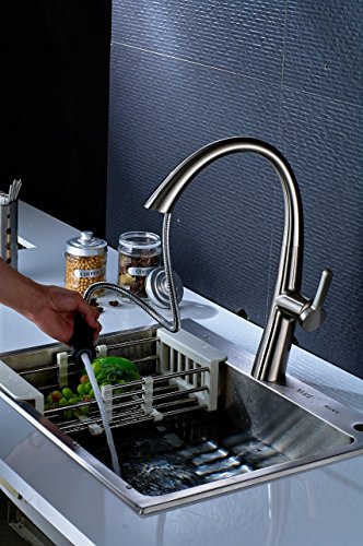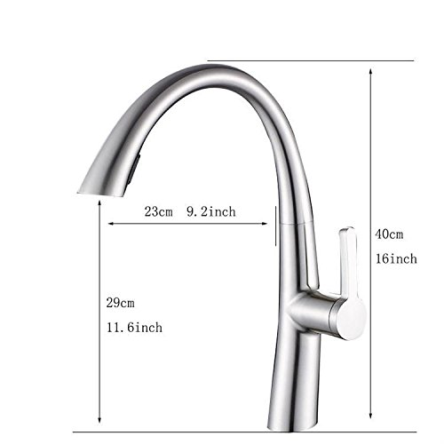 - ENJOY STRESS FREE FUNCTIONALITY: Treat your sink to a pull down faucet that can do it all. Control both the volume and temperature with the single lever, go from a steady stream to a strong spray at the push of a button, and enjoy full sink access with the 360-degree swivel & smooth faucet pull out.