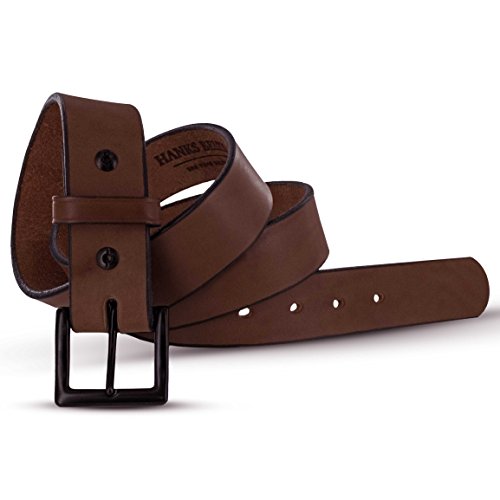 Studio : Hanks Belts Publisher : Hanks Belts Binding : Misc. Product Description Tough As An American Bull And Just As Good Looking Hanks Everyday Belts are made right here in the US of A from 12 ounces of the finest full grain leather.Full grain refers to the top layer of hide - the toughest part of the beast. You'll never use another nylon belt after you get your hands on this one. We know you're going to wear your own buckle anyway, so we make ours removable. We use Chicago Screws, not snaps. They work better. 100-Year Warranty - We're Not Joking We take our belts seriously and when it comes down to it, quality is everything. You can't have your heavy duty work belt breaking or coming apart on you at the wrong time, so we do our best to make sure that never happens. If your new Hanks Everyday Belt breaks at any time between now and 100 years from now, we'll replace it with a new one. And if you choose the wrong size, we can exchange it for free. Order Your New Hanks Belt Today and Discover the Difference Real American Quality Makes 0