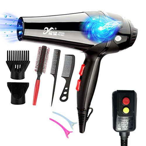 3000W blue light anion Hair Dryer (once the short circuit caused by leakage, leakage protection function is automatically activated to ensure the safety of you and your family)When the switch is powered down, press the red button,The hair dryer continues to work