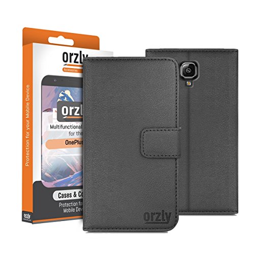 Orzly® - Multi-Function Wallet Case for OnePlus 3 SmartPhone (2016 Model / Dual SIM Version) - BLACK Wallet Case Style Phone Cover with Card Pockets & Integrated Display Stand