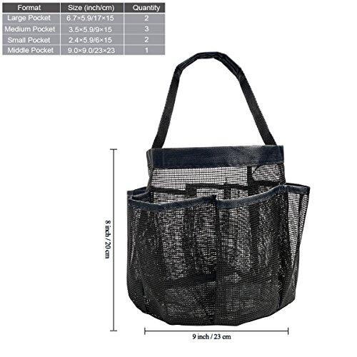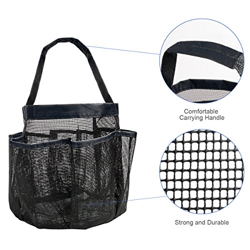 Mesh Shower Caddy - Quick Dry 8 Pockets Mesh Portable Shower Tote Bag with Handle for College, Dorms, School, Sport, Gym, Camp, Black