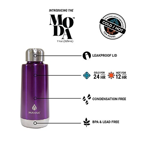 Manna Moda Kids Metallic Stainless Steel Double Walled Vacuum Insulated 11 oz Water Bottle | No Sweat | BPA Free | Keeps Drinks Hot 12 Hours & Cold 24 Hours | Perfect for School and Sports - Shark