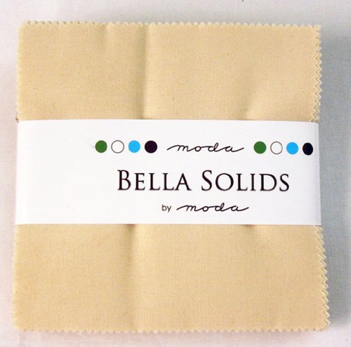 - Includes 42 fabric squares from the Moda Bella Solids Natural 9900-12 colorway; neatly stacked and secured with a paper strap.